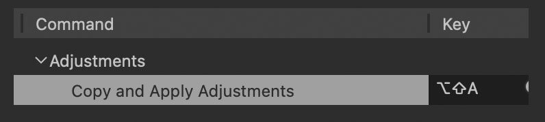 First, find the Copy and Apply Adjustments shortcut and assign a key combination to it.