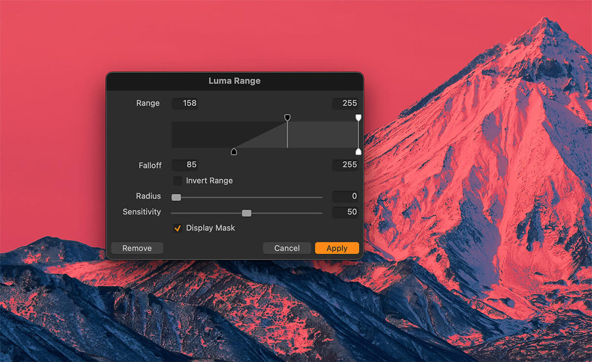 It already has a cool component of the contrast, so we only need to make some areas a bit warmer. We’re going to create a new filled layer and apply Luma Range to remove dark areas from the mask: