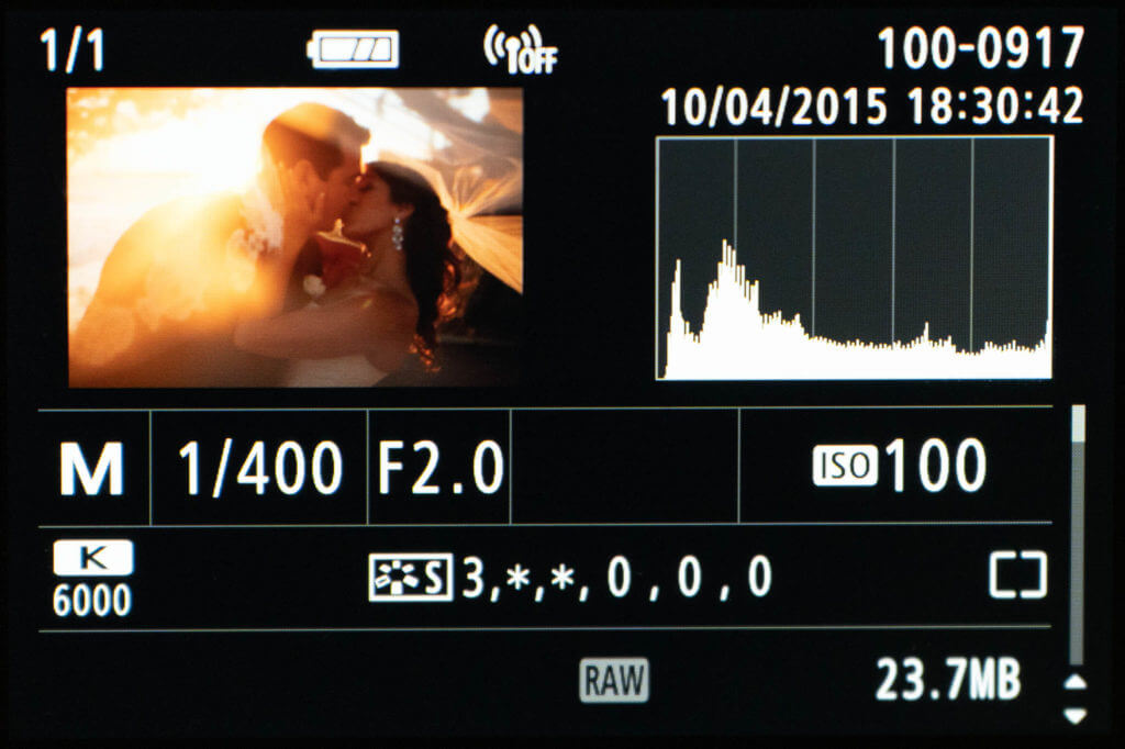 Again, the screen on the back of the camera is unreliable because it looks different depending on the brightness levels of the screen and the brightness of the environment. The histogram gives you an accurate, mathematical reading of the image to ensure that you’re not blowing out your highlights or clipping your shadows. If you’re shooting RAW, you can likely bring back anything, i.e. correct the exposure for anything, that isn’t completely gone, i.e. clipped or blown out.