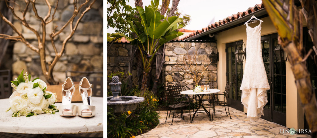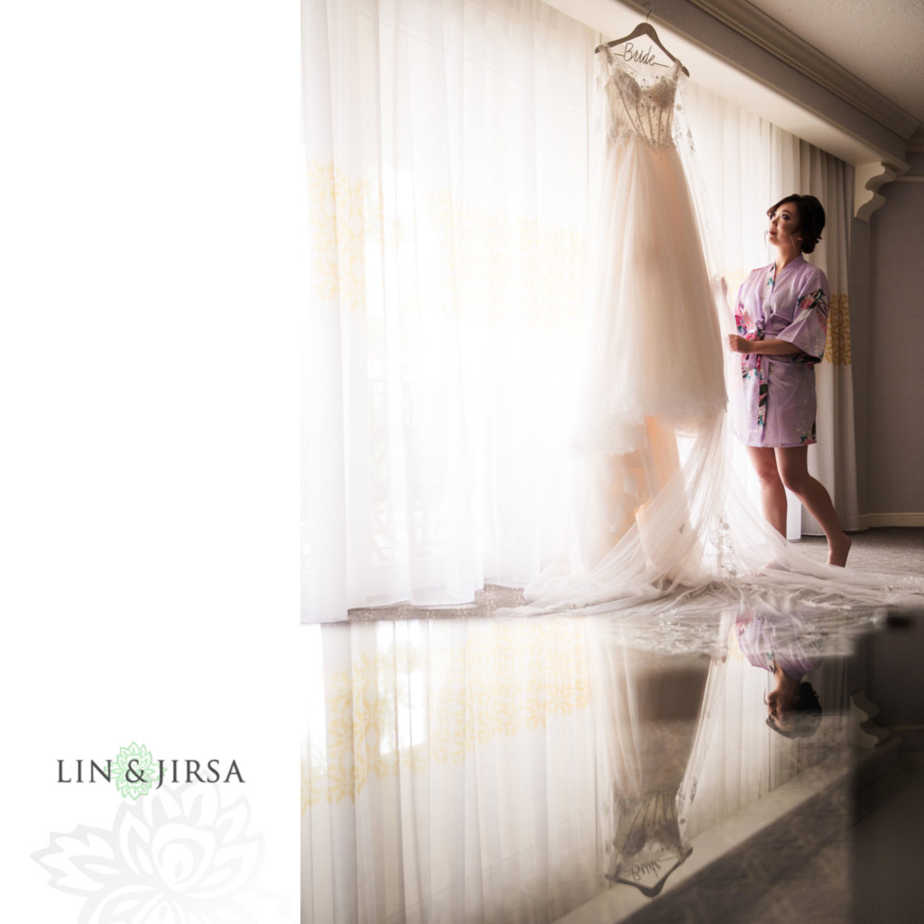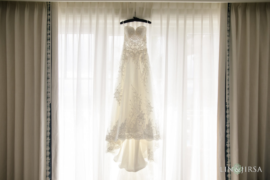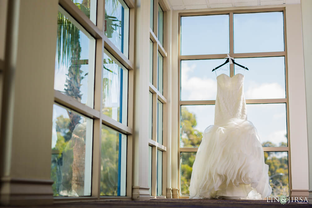 If the wedding venue has incredible views, consider hanging the dress, opening the curtains and showing off the beautiful scenery. Of course since the outside lighting is likely brighter than the inside of the room, you might need to add flash photography or consider an HDR photo.