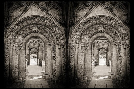 Stereoscopy or Stereoscopic 3D is a way to create the illusion of depth from two flat images photographed or drawn at slightly different angles. It simulates what happens every waking moment of our life when our brain fuses the two flat perspectives seen by each of our eyes into a unique three-dimensional mental picture. Whatever the technique used to view stereoscopic pictures (lenses, prisms, mirrors, glasses, filters, etc.), the idea is that the left eye can only see the left image and the right eye the right one, thus feeding the brain with the two separate inputs needed to operate the fusion into a three-dimensional representation.
