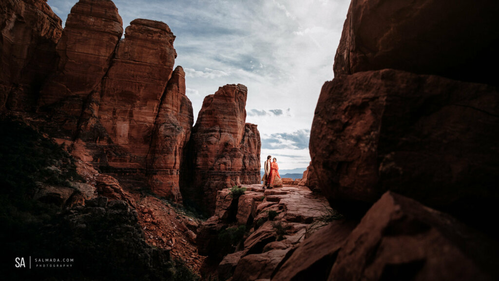 The towering red rock formations of Cathedral Rock are truly a sight to behold. But what makes Cathedral Rock truly unique is its geology. The rock formations are made up of Schnebly Hill sandstone, which is known for its interesting layering. This type of sandstone is also relatively soft, which means it’s easily eroded by wind and water. over time, this erosion has created the signature redrock formations that make Cathedral Rock so distinctive. So when you’re admiring the beauty of Cathedral Rock, you’re also witnessing the power of erosion. This is truly one of the best photography spots in Arizona, especially for wedding and engagement photography, as you can see from the example below.