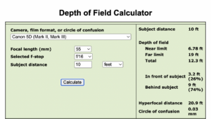 There is a specific formula to calculate the Hyperfocal Distance but nowadays we have tools that can easily calculate it for us.