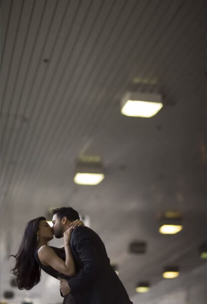 The image above presents a unique situation as we have our silhouetted subjects centered in the lower portion of the frame. A mural of a couple occupies the negative space around our subject and mirrors their pose, creating a balancing act between both spaces and serving as a vehicle for both positive and negative space imagery.