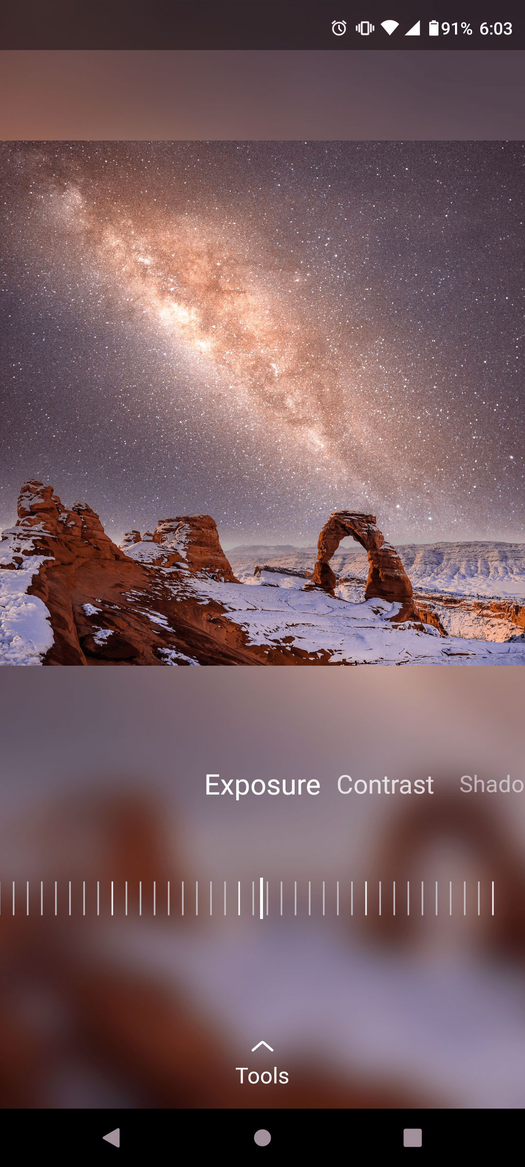 The interface is very intuitive; you open an image immediately and begin apply adjustments. When you’re satisfied with your creative results, you have a share tool that allows you to go straight to your social media platform of choice, or use other means of communication. Of course, you can simply export images and save them to your phone for sharing later, too.