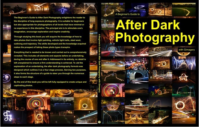 If you liked what you read and are interested to explore the world of long exposure photography further, I have just released my debut book ‘A Beginner’s Guide to After Dark Photography with Gimagery’ on Amazon. It enlightens the reader to the discipline of long exposure photography in a way that has never been done before. It provides in-depth step-by-step guides with interactive running examples on how to take five different types of long exposure photos. These five photo types are light painting words, vehicle light trails, steel wool, outlining and trajectory. After reading this book you will be left fully equipped with the skills to create unique and captivating photos.
