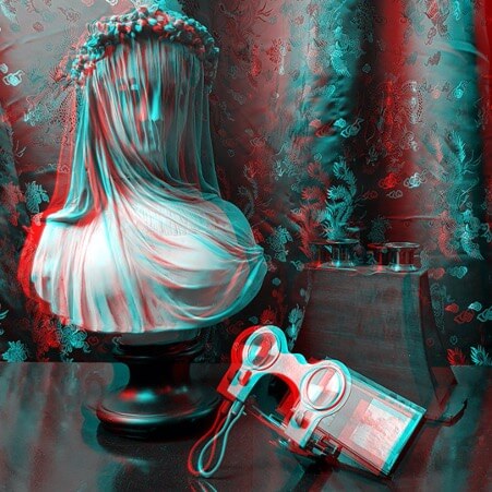 Stereoscopy or Stereoscopic 3D is a way to create the illusion of depth from two flat images photographed or drawn at slightly different angles. It simulates what happens every waking moment of our life when our brain fuses the two flat perspectives seen by each of our eyes into a unique three-dimensional mental picture. Whatever the technique used to view stereoscopic pictures (lenses, prisms, mirrors, glasses, filters, etc.), the idea is that the left eye can only see the left image and the right eye the right one, thus feeding the brain with the two separate inputs needed to operate the fusion into a three-dimensional representation.